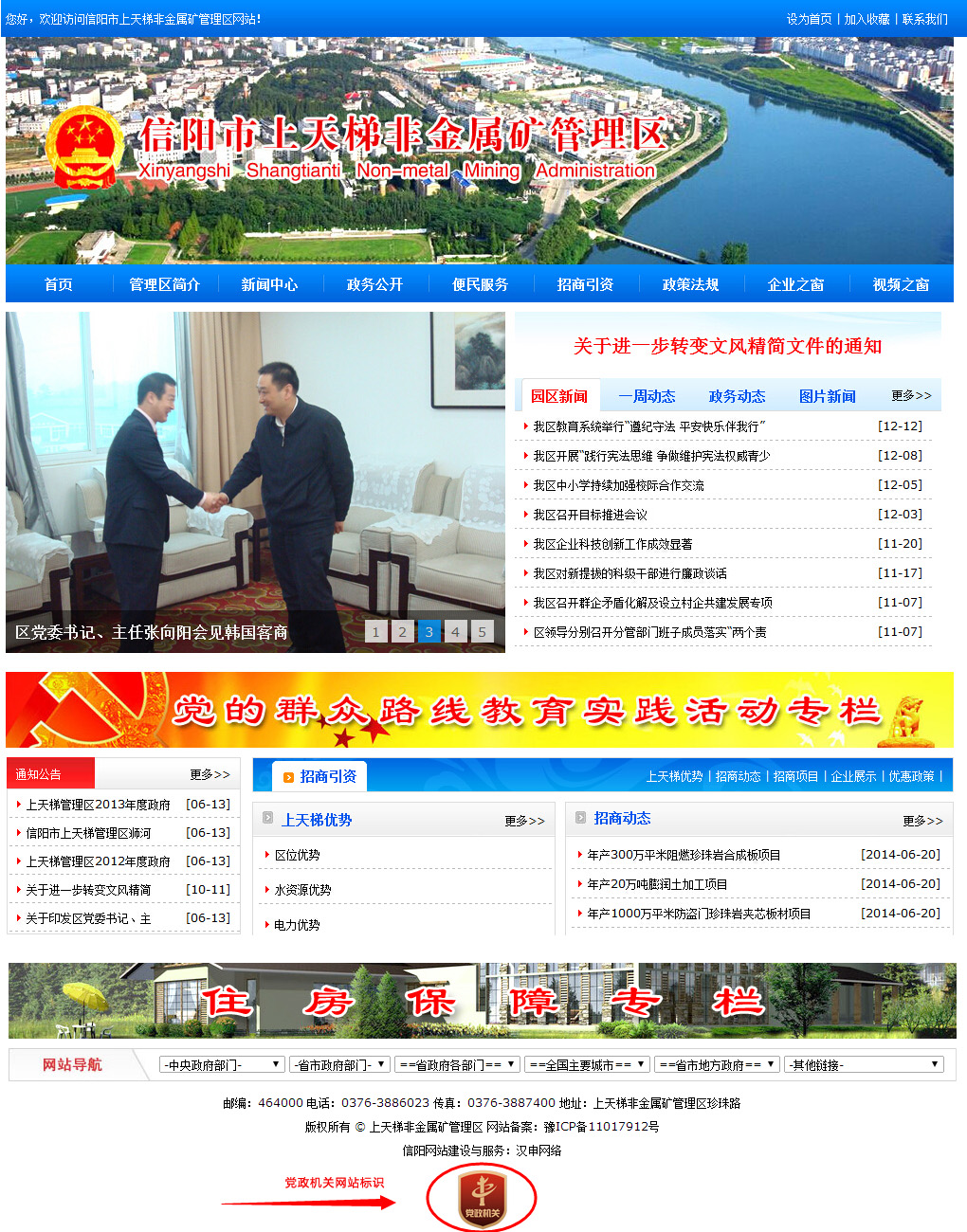 截至日前,信阳首批党政机关和事业单位网站已经正式挂标,目前有信阳上天梯非金属矿管理区,信阳市农民专业合作社网等网站正式挂标。